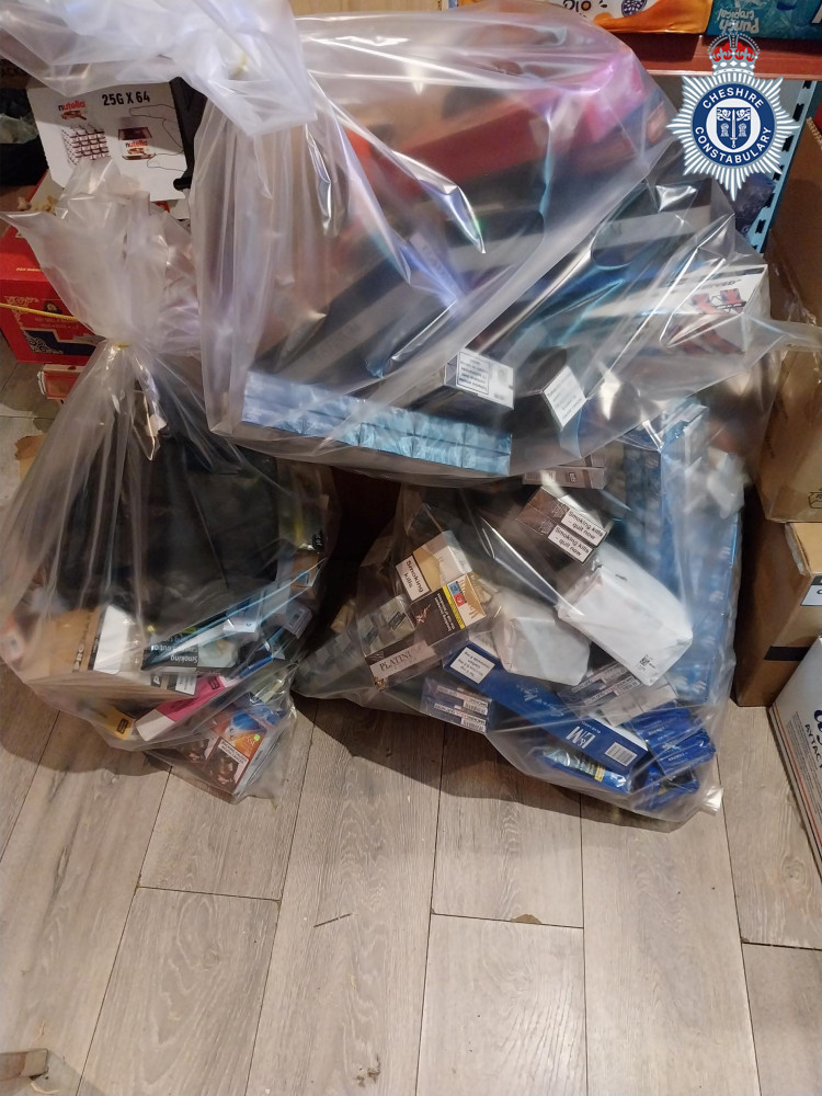 A follow-up visit was conducted at a premises on Bradwall Road, Sandbach, that had been previously visited a week earlier, and a considerable number of illicit products were seized.