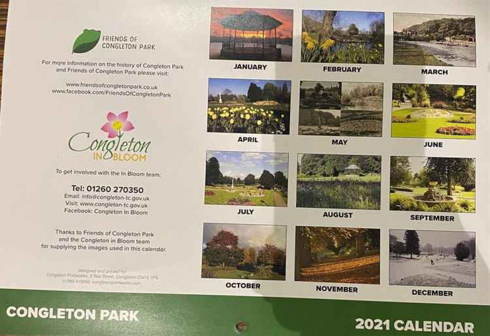 The calendar is on sale at The Information Centre, the Old Saw Mill and of course at Stocks at the Pavilion in Congleton Park.