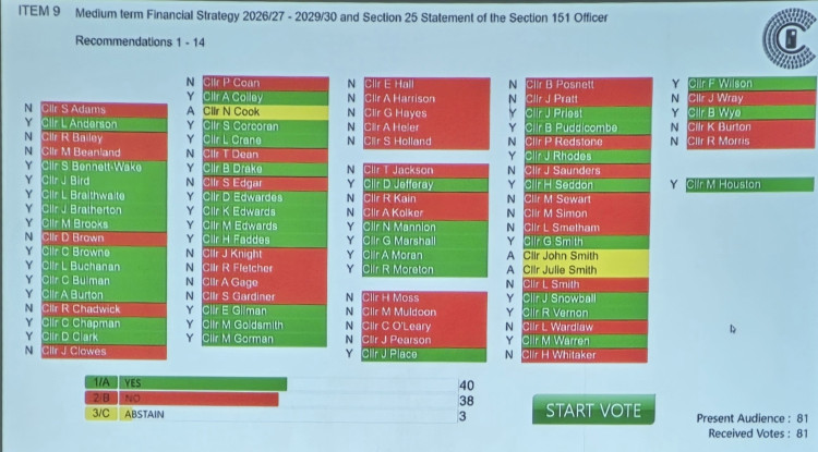 The budget was voted through by 40 to 38, with three councillors abstaining at Wednesday's (February 25) meeting of the full council and will see the total annual bill for a band D property go up to an average £2,454 from April.