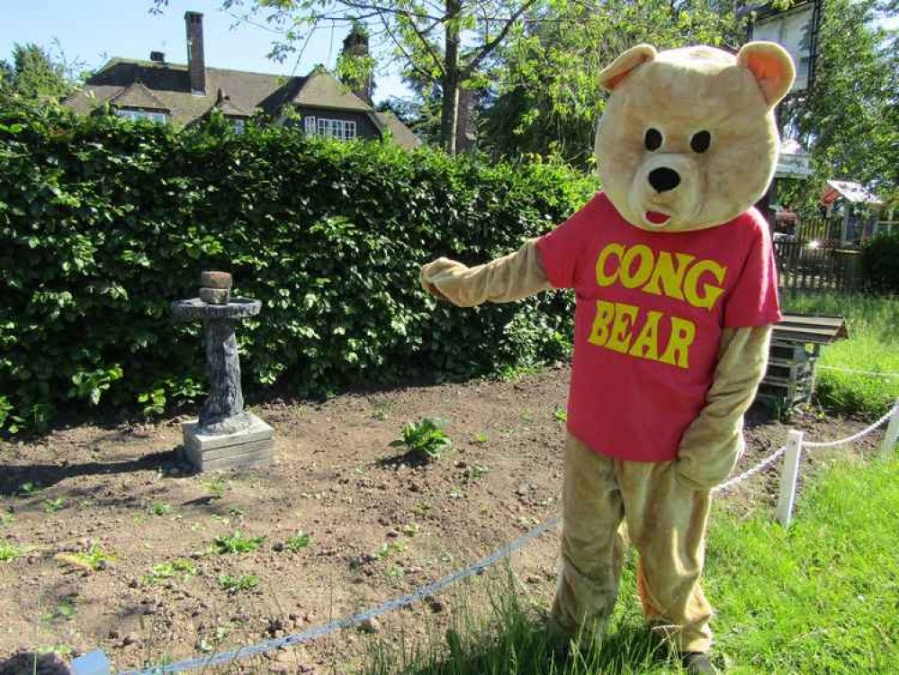 Cong Bear was as pleased as punch at the unveiling of the Cong Bear bird bath in Buglawton.