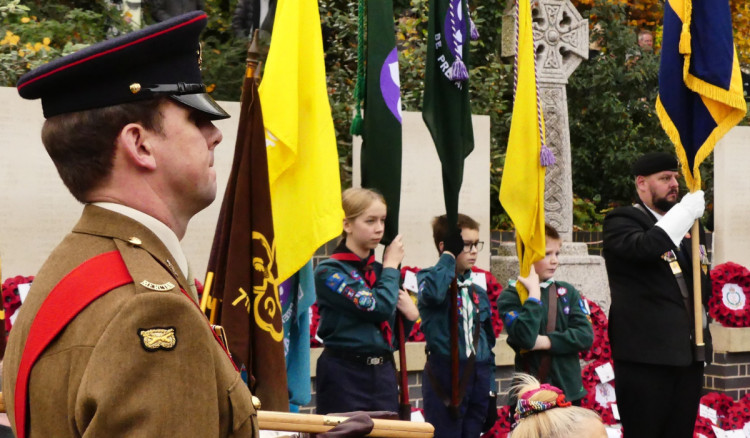 The parade, led by the 2493 Sqn Alsager Air Cadets Band, featured veterans, youth groups, emergency services, civic dignitaries, and members of the armed forces.