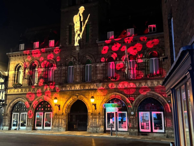 In a fitting tribute, Congleton Town Council teamed illuminated the Town Hall with a striking poppy display during the evenings.