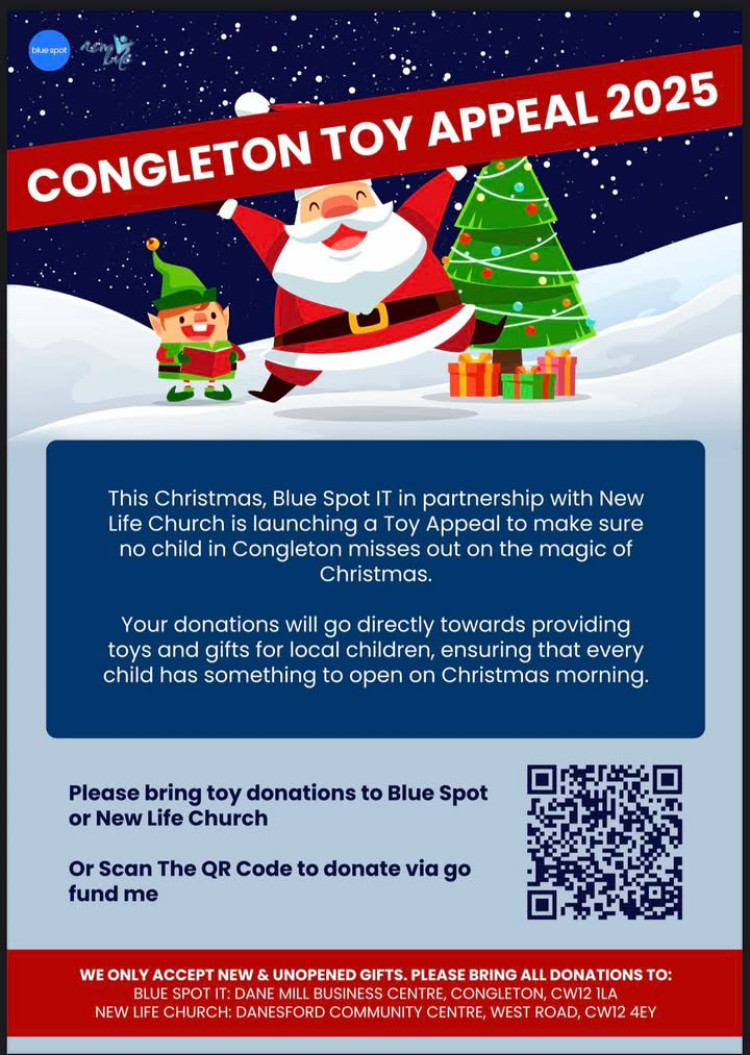 New and unopened toys can be dropped off at Blue Spot at Dane Mill Business Centre or New Life Church at Danesford Community Centre on West Road.