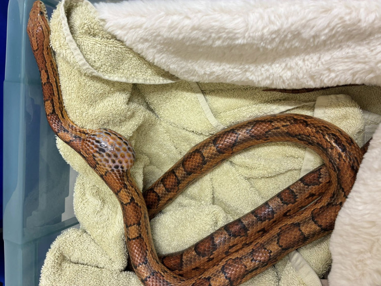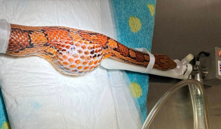 Belt the corn snake was in last week for the removal of a large mass on the side of his body.