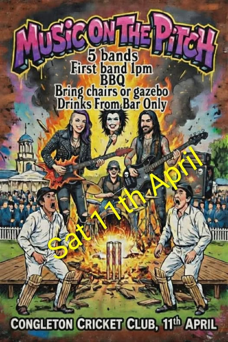 No Fit State and four other bands will take to the field at Congleton Cricket Club on Saturday.