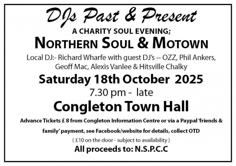 DJ's Past and Present are hosting an evening of northern soul and Motown at Congleton Town Hall.