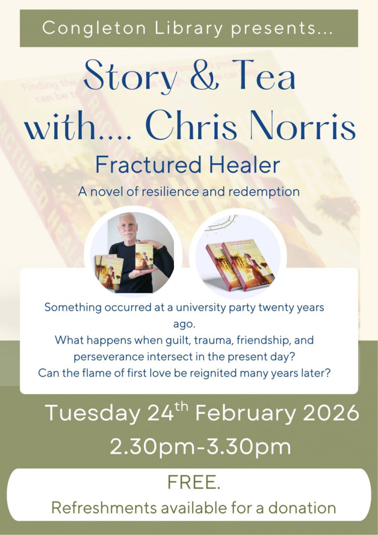 Head over to the library and meet Chris Norris, author of the novel Fractured Healer.